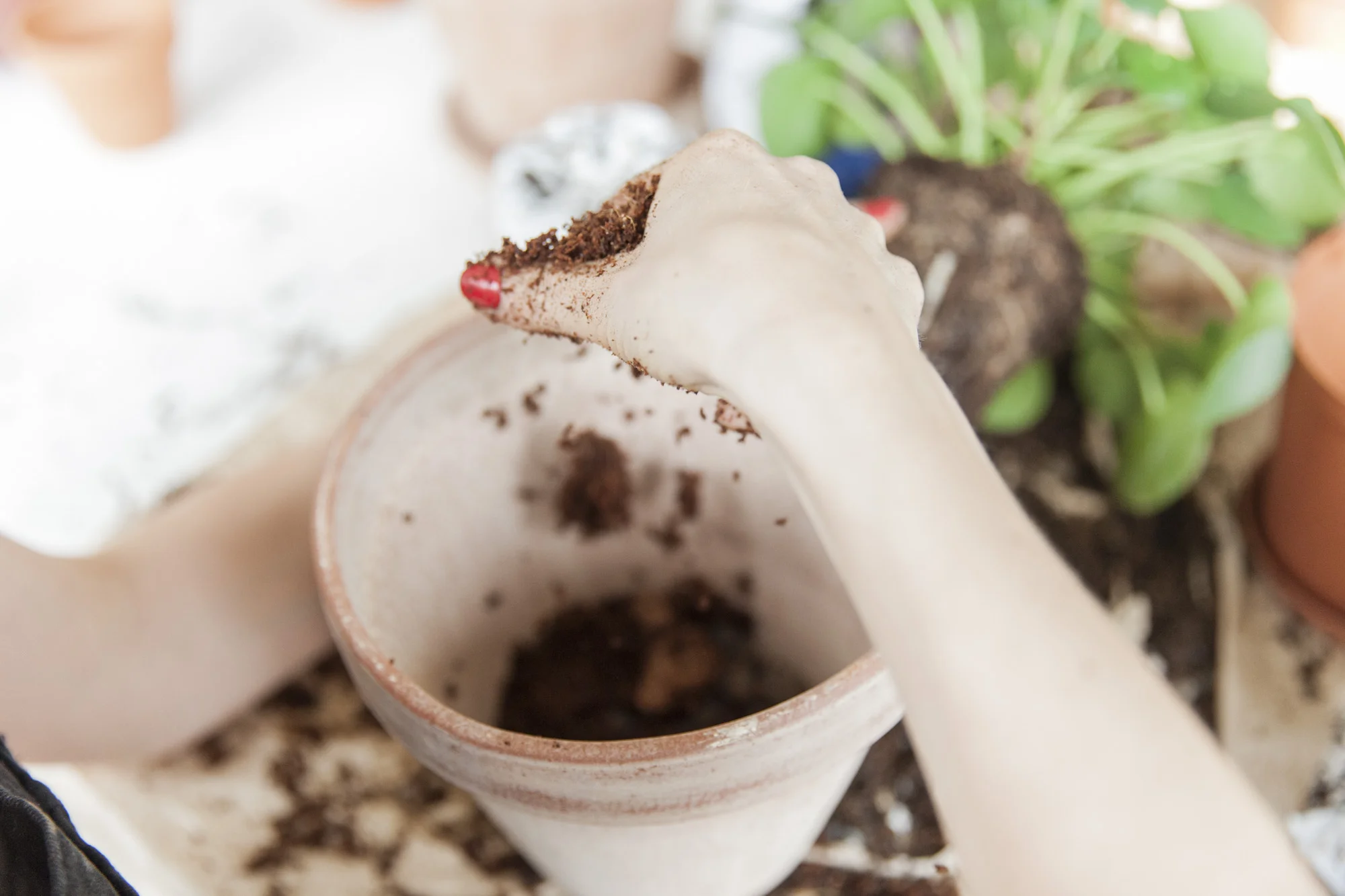 3) Ha i noen cm med jord.