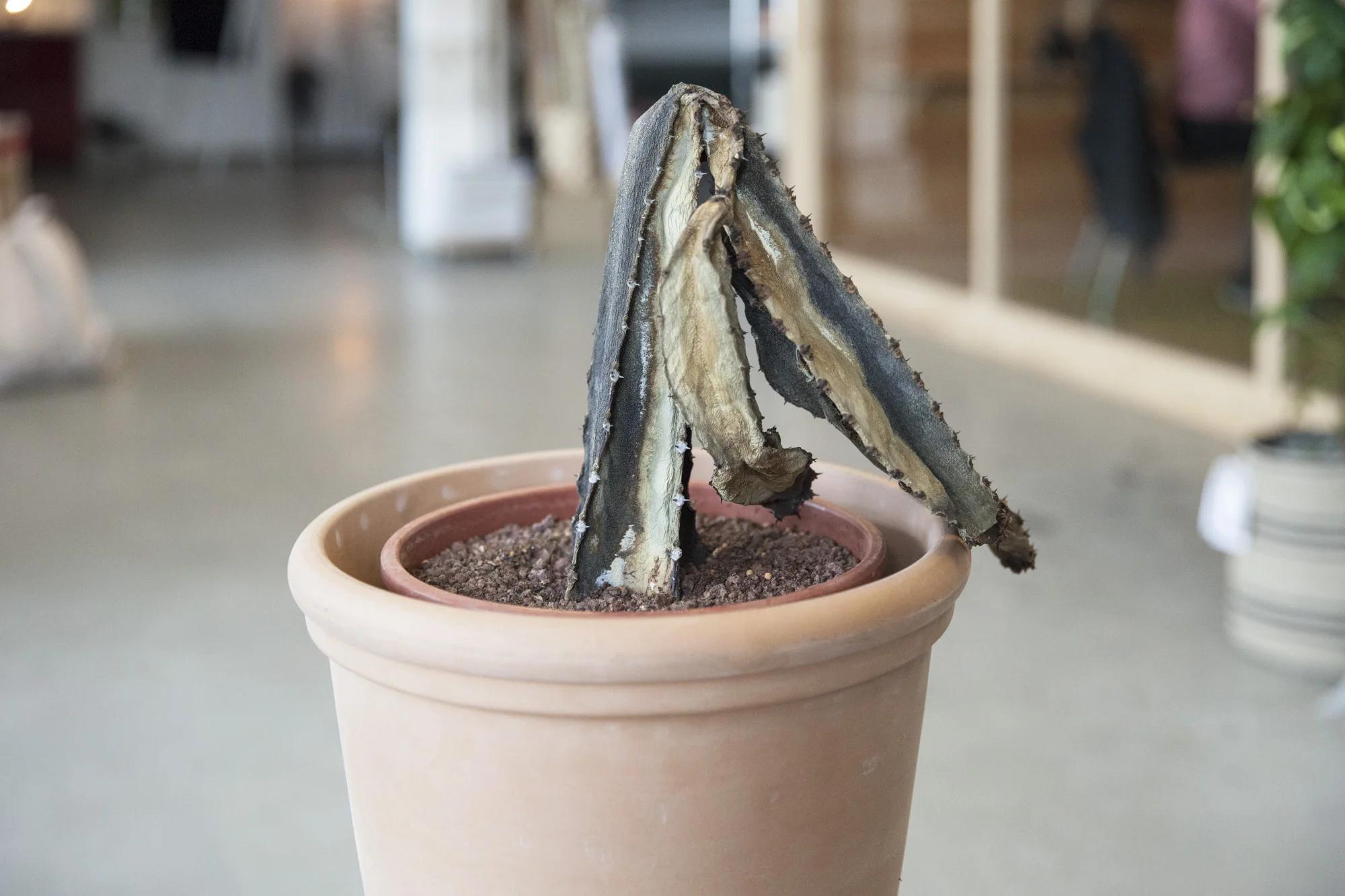 Det tok fire dager fra vi først oppdaget det, til den lå med brukket rygg. Råte som kom fra bunnen av planten og til slutt vant kampen mot giganten. (Latinsk navn: Euphorbia ingens)
