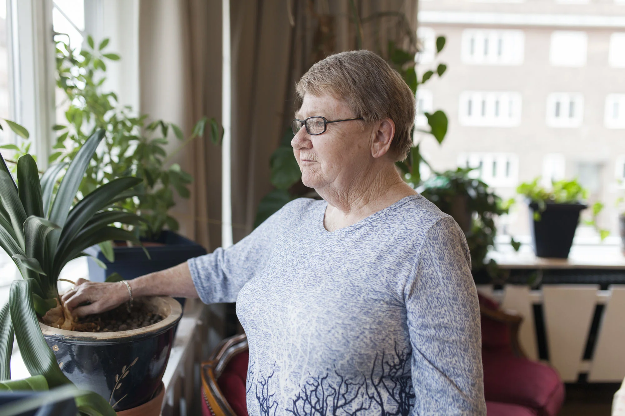 Laila: – I morgen er det vanningsdag! Jeg er planteansvarlig på huset og vanner plantene fast hver mandag og torsdag. Da går jeg runden min og passer på at alle har det bra; vanner, gjødsler og kniper av litt døde blader. Jeg har til og med min egen vogn med utstyr.